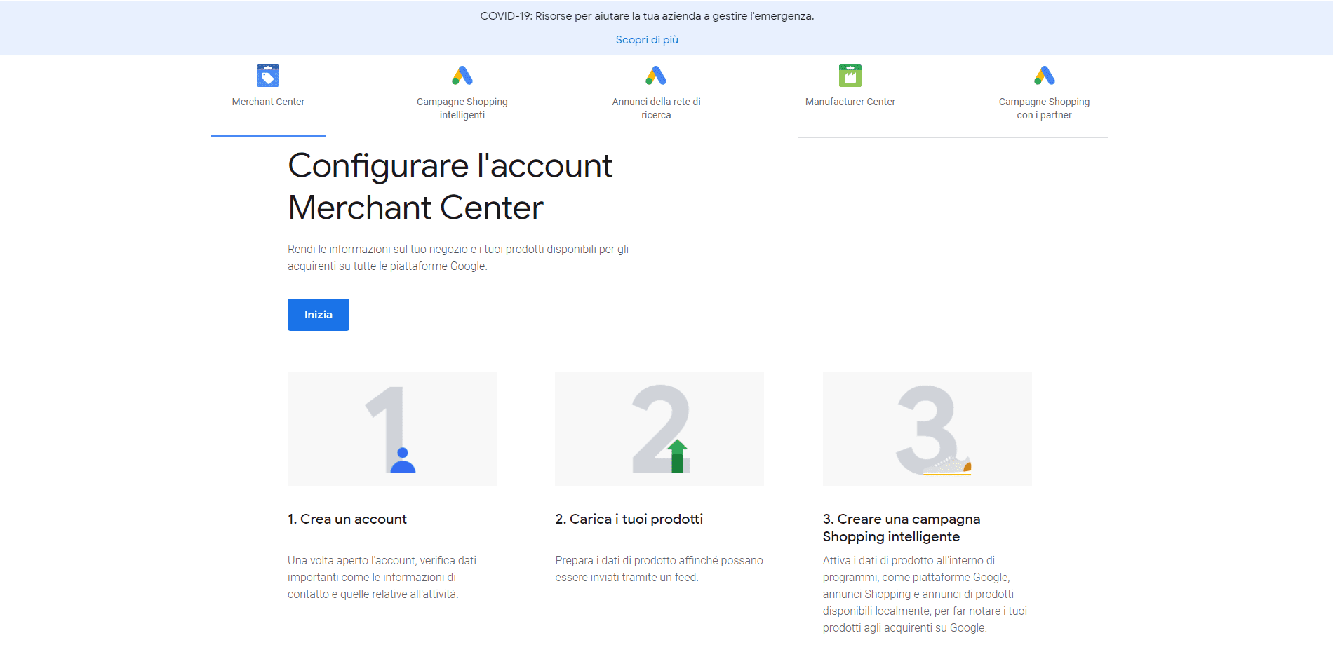 Registrati sul Merchant Center di Google