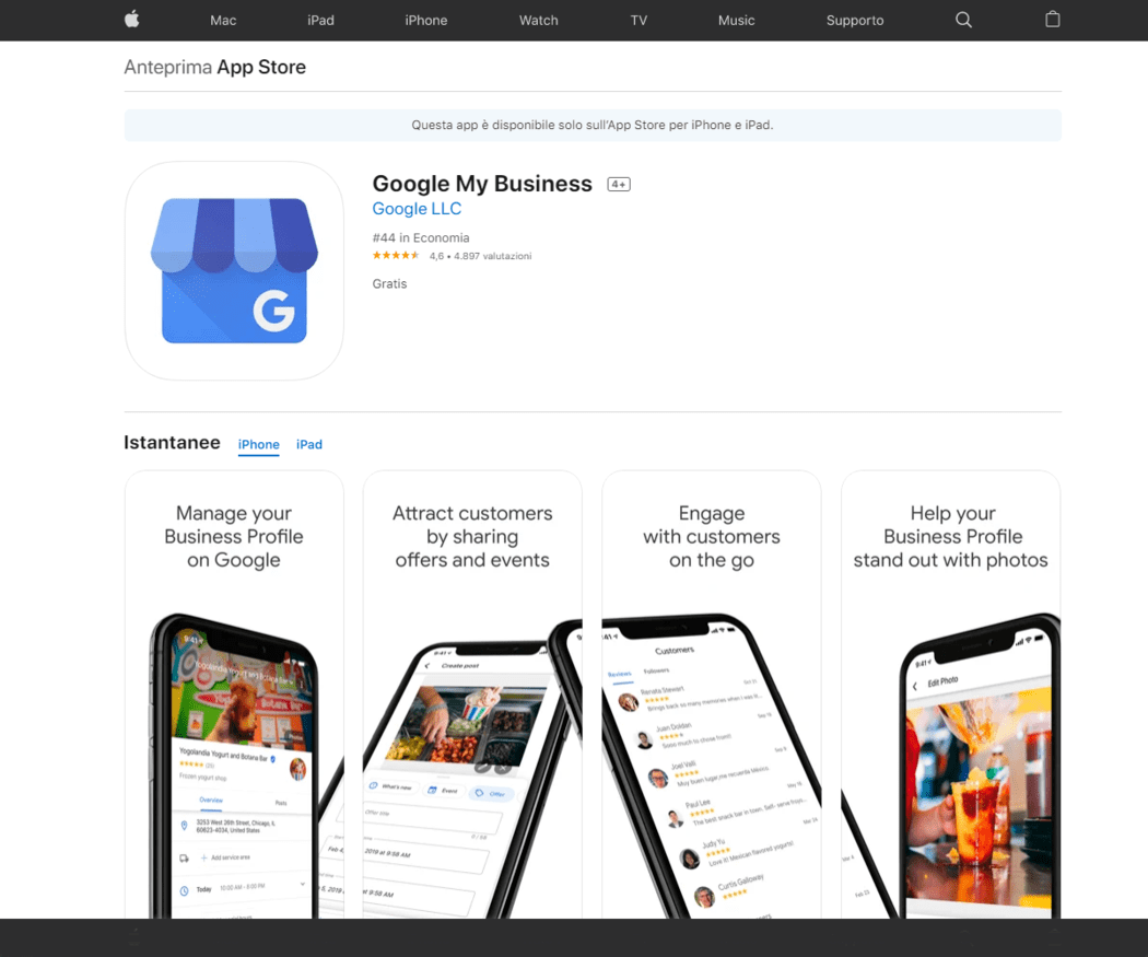 Una volta completati i passaggi necessari, scarica l'app Google My Business dall'Apple App Store