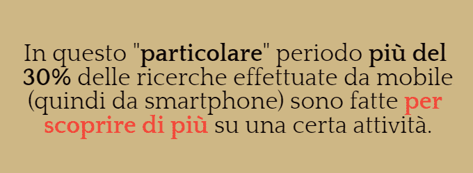 Se sei il proprietario di un’attività o gestisci la parte online di un’azienda devi sapere che: la ricerca locale è una risorsa indispensabile per la tua attività, infatti nei dati che sopra ho citato con delle immagini avrai capito che è possibile aumentare le visite, le chiamate, il lavoro e di conseguenza il fatturato!